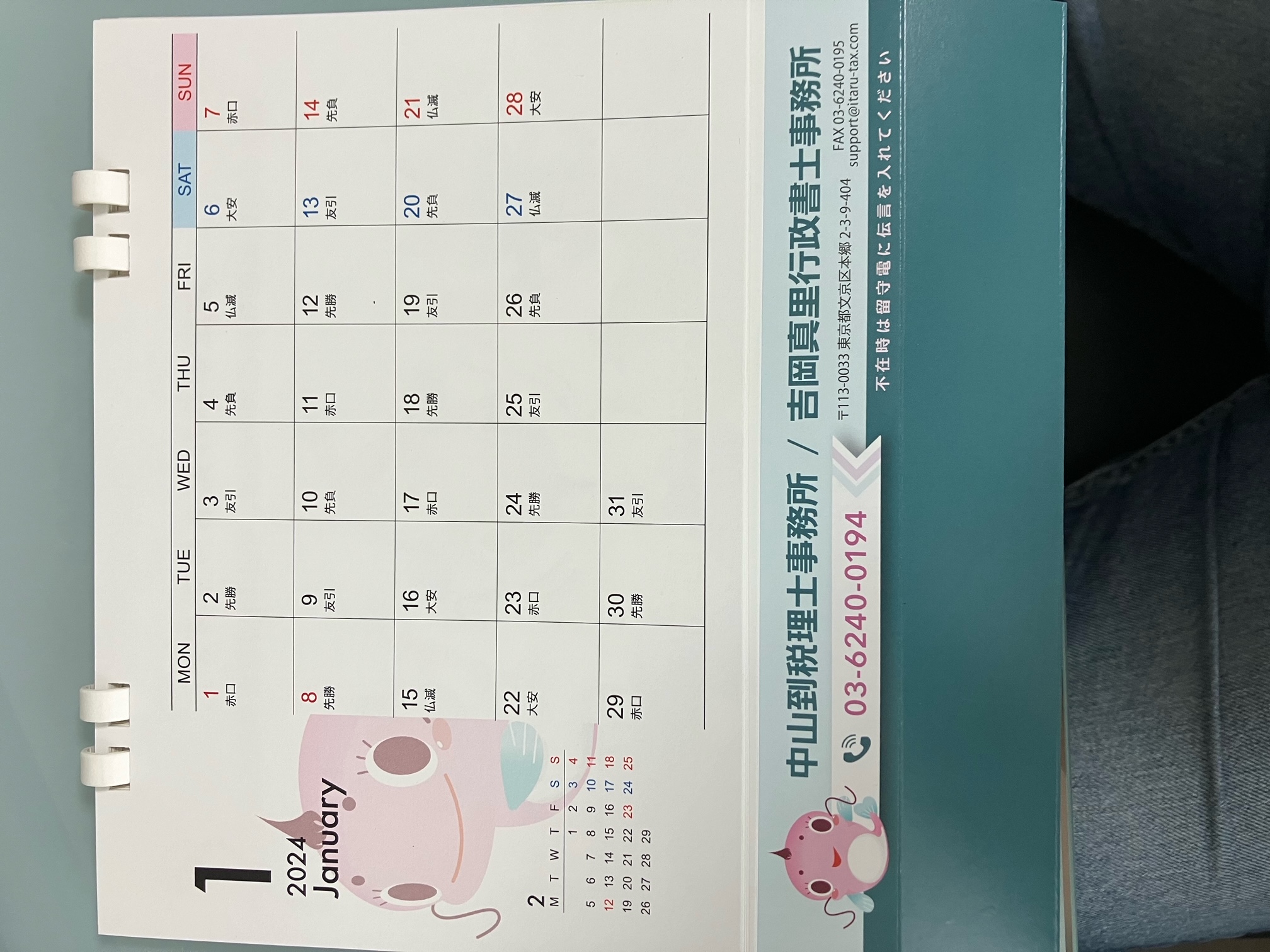 1月弊所カレンダー